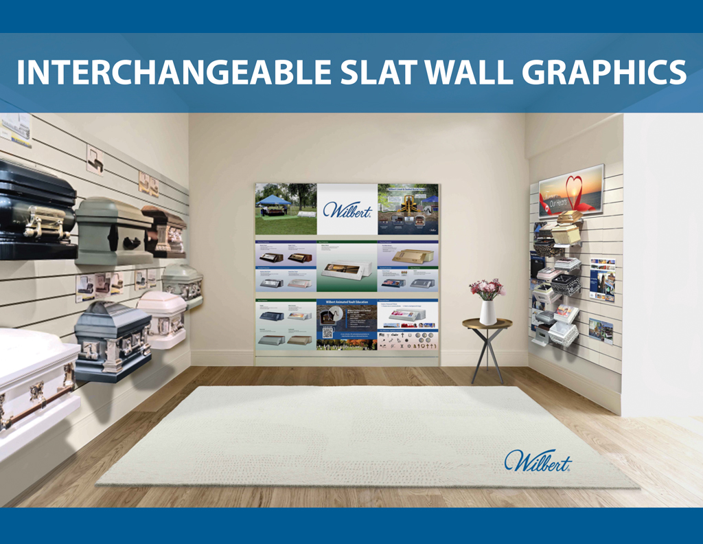 clear and consistent interchangeable slat wall graphics which are print ready for Wilbert licensees.